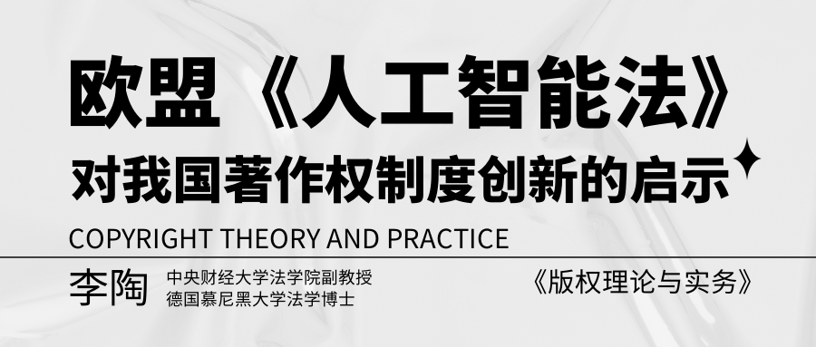 原文刊载于《版权理论与实务》2024年第5期,原标题为《欧盟〈人工智能法〉对我国著作权制度创新的启示》,转载请注明出处。【扫描下方二维码即可订阅2024年全年《版权理论与实务》杂志。欢迎订阅!欢迎投稿!】【李陶丨中央财经大学法学院副教授、德国慕尼黑大学法学博士】【内容提要】欧盟《人工智能法》以《欧盟宪章》基本权利为价值标准,采用分级分类建立规制机制的方式,为欧盟人工智能产业全链条发展编制了一张保障运行的安全网。立法说明与法律文本从责任主体、许可与例外、域外适用、证据规则、行政监管等方面明确了通用人工智能模型提供者所应承担的著作权合规义务。该合规义务的明示引发了相关主体对著作权制度完善和制度运行的讨论。这些讨论可从著作权的权利保护规则、限制例外规则、授权许可规则、权利救济规则等方面,为我国未来著作权制度的创新与完善提供启示。【关键词】欧盟《人工智能法》;通用人工智能模型提供者责任;著作权合规义务;文本和数据挖掘;著作权集体管理*本文系国家社科基金一般项目“新发展格局下我国著作权集体管理领域的反垄断规制研究”(21BFX202)的阶段性研究成果。一、欧盟《人工智能法》概述